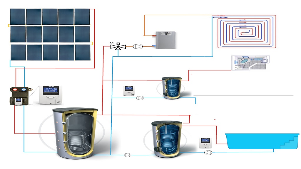 Jedan kompletan sistem za SOLARNO GREJANJE prostorija sastoji se iz: